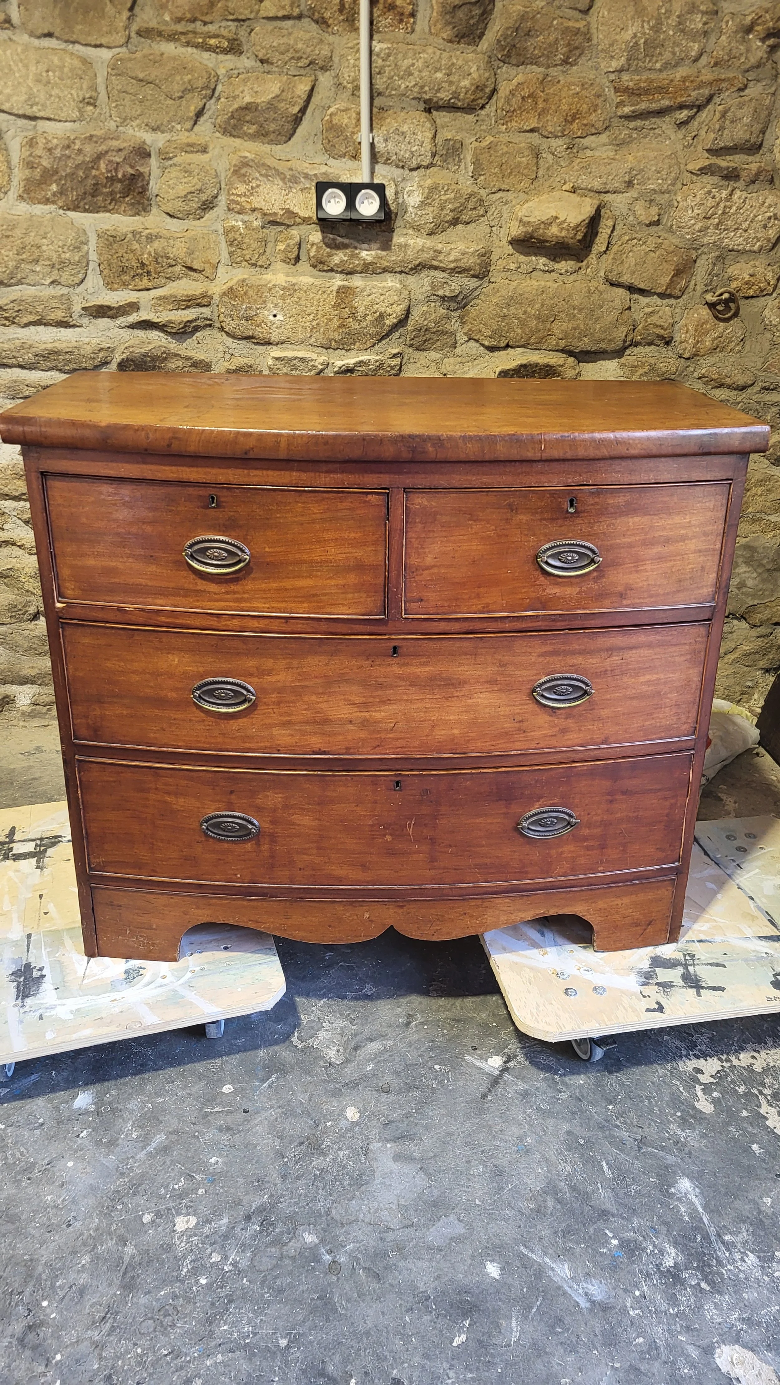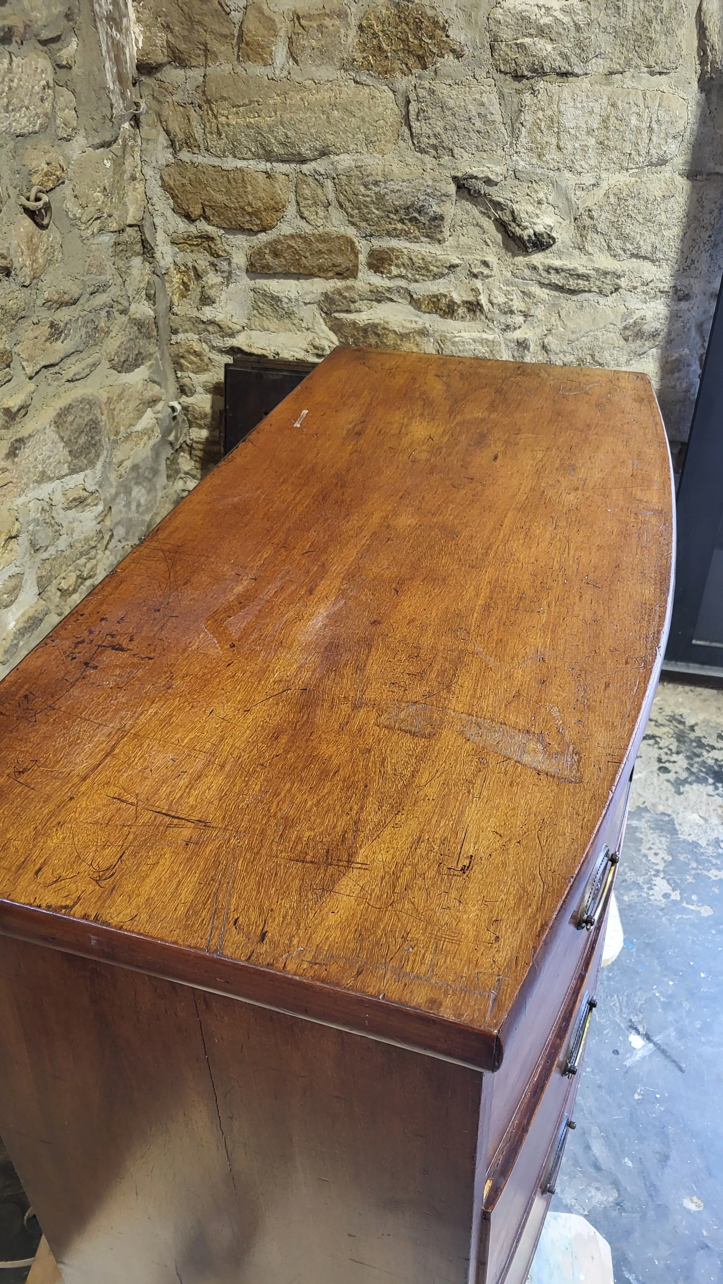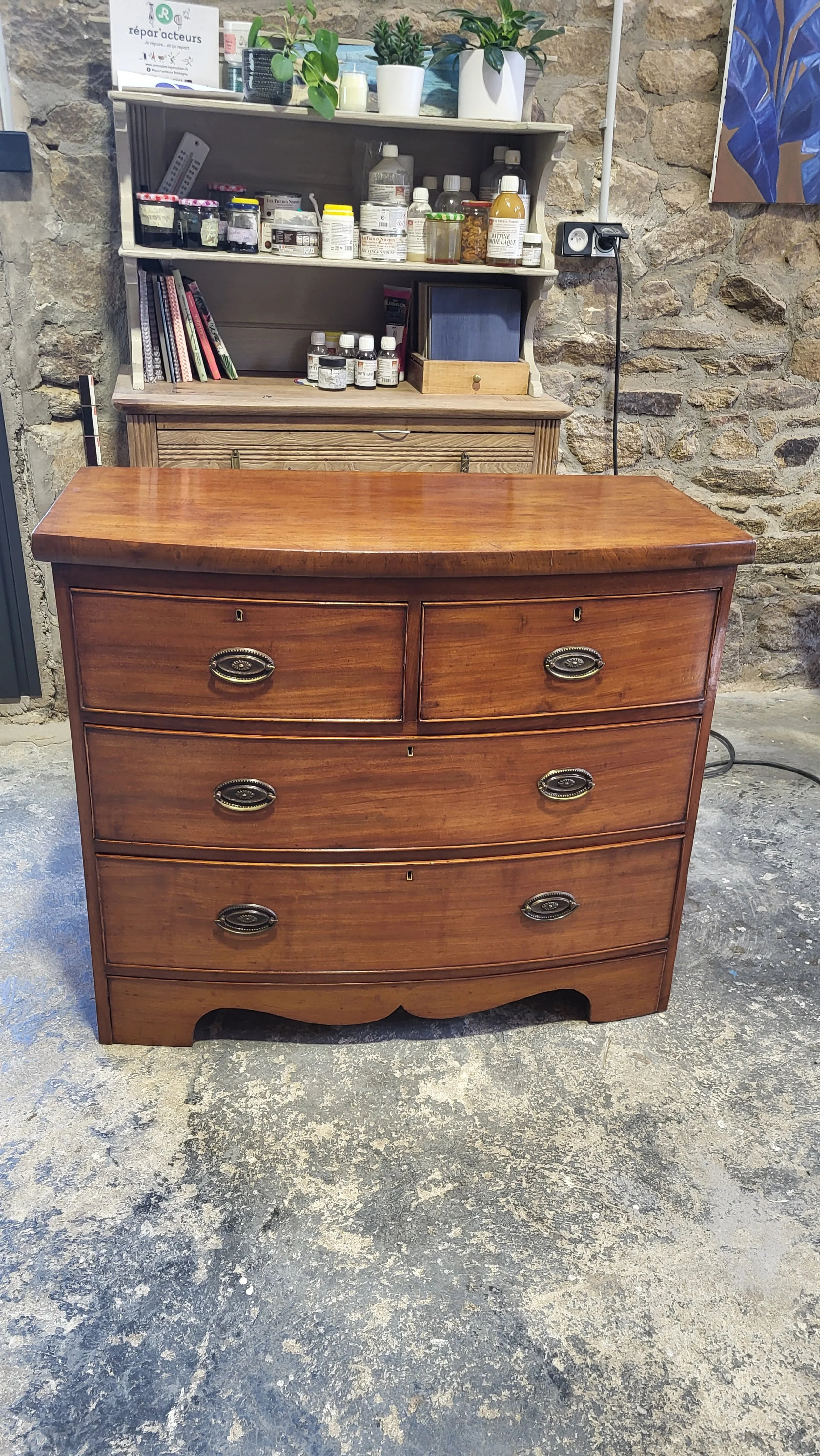Avant : tâches et traces sur le plateau, vernis gomme laque très abimé, placage à reprendre par endroits, petits trous à boucher …