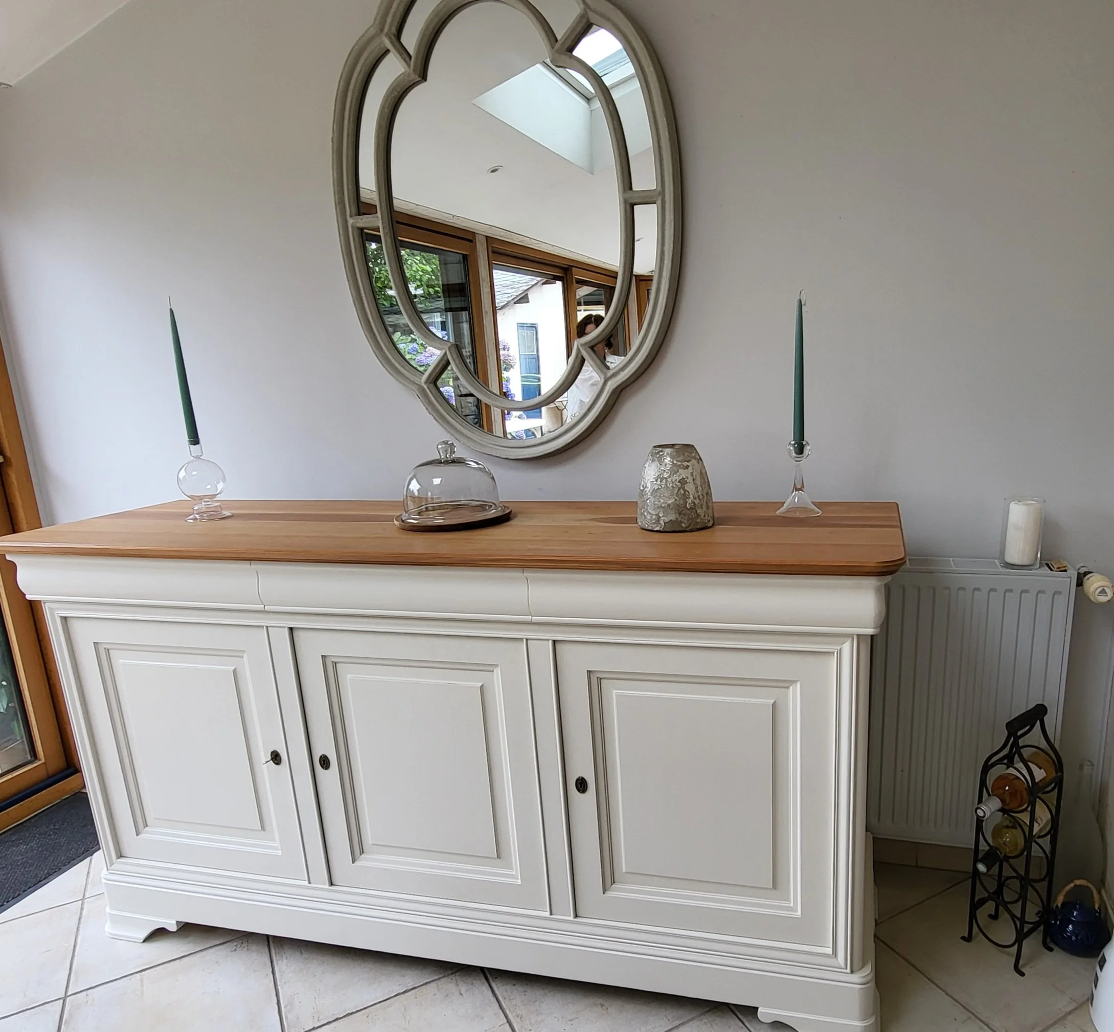 Enfilade Louis Philippe revisitée… 1 sept. Écrit par Caroline Duret Buffet en merisier, couleur meringue, finition mat. Avant rénovation Caroline Duret