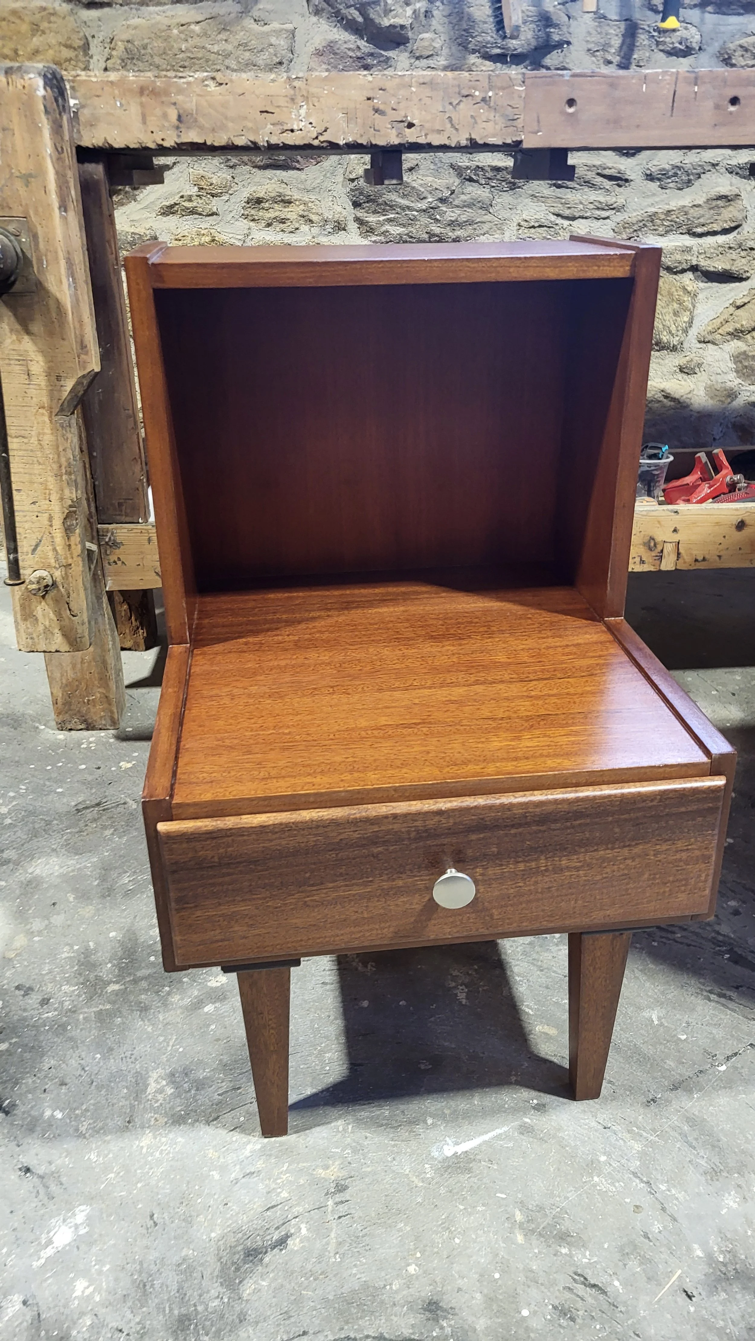 Table de nuit années 70, rénovée dans la patine de l’époque 7 nov. Écrit par Caroline Duret Après Avant Caroline Duret